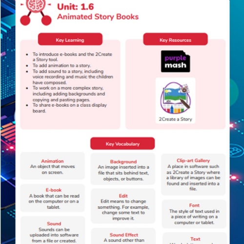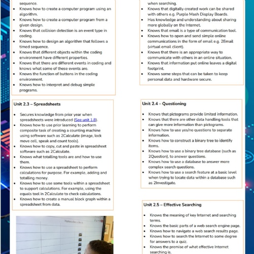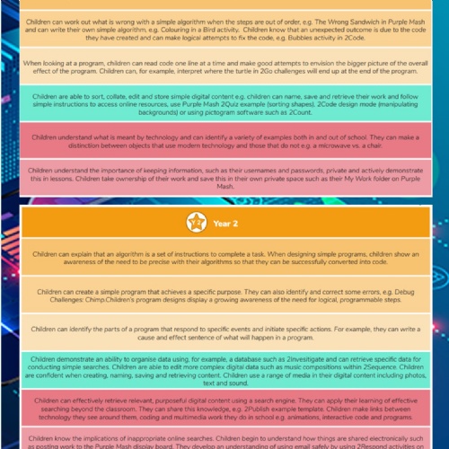 We follow the Purple Mash scheme, which provides structured progression in coding, typing, and digital design.