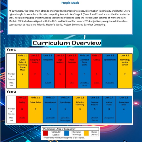 Full details of our computing curriculum can be found in our Computing and Online Safety Curriculum Document.