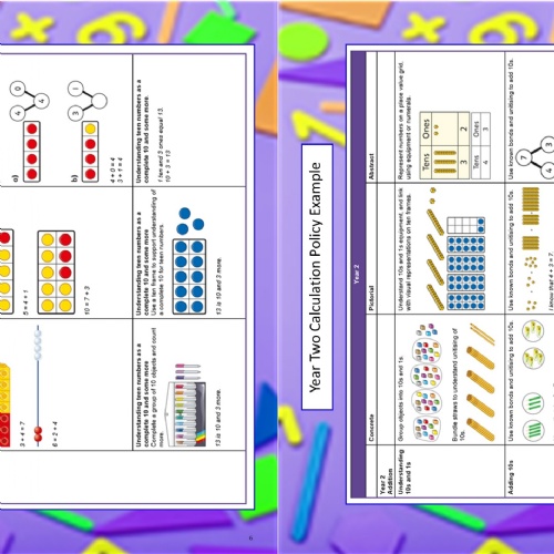 - Use of concrete resources (counters, cubes, bead strings) and pictorial representations before moving to abstract concepts